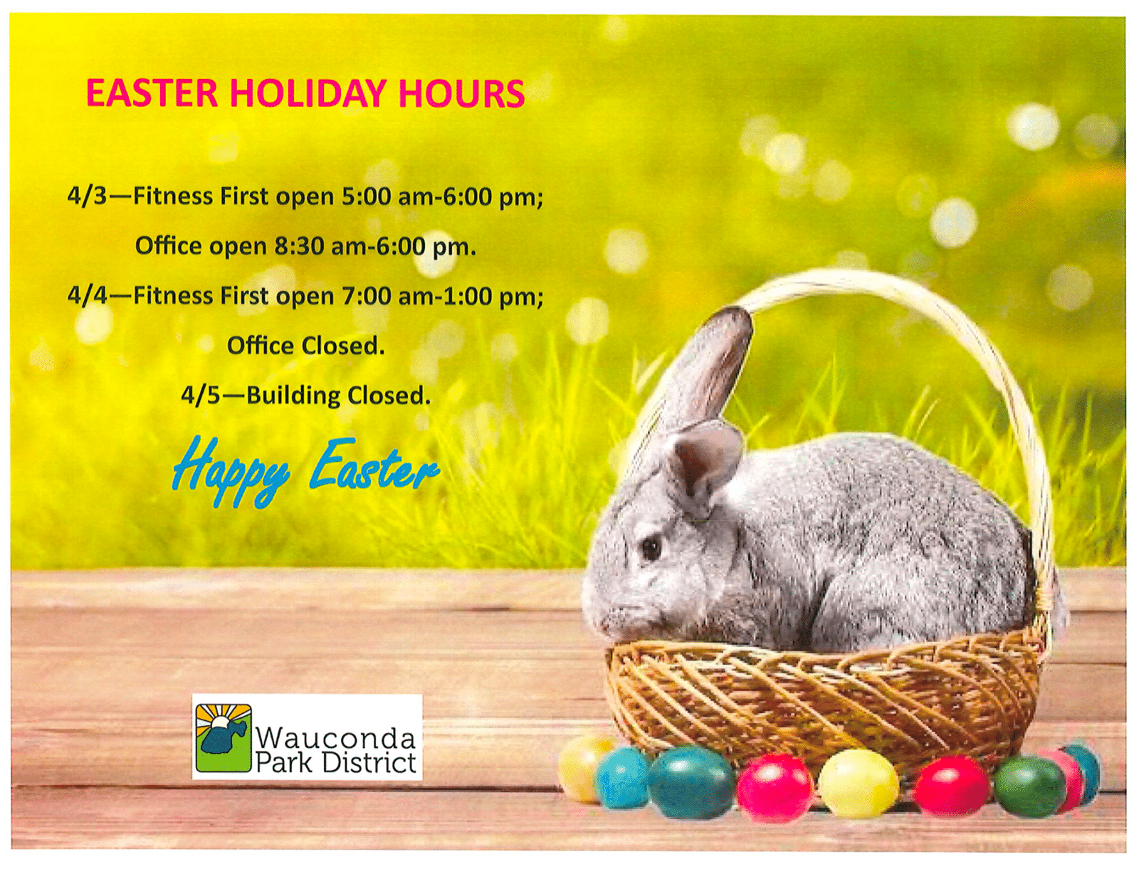 Happy Easter – Community Center office and Fitness First are CLOSED