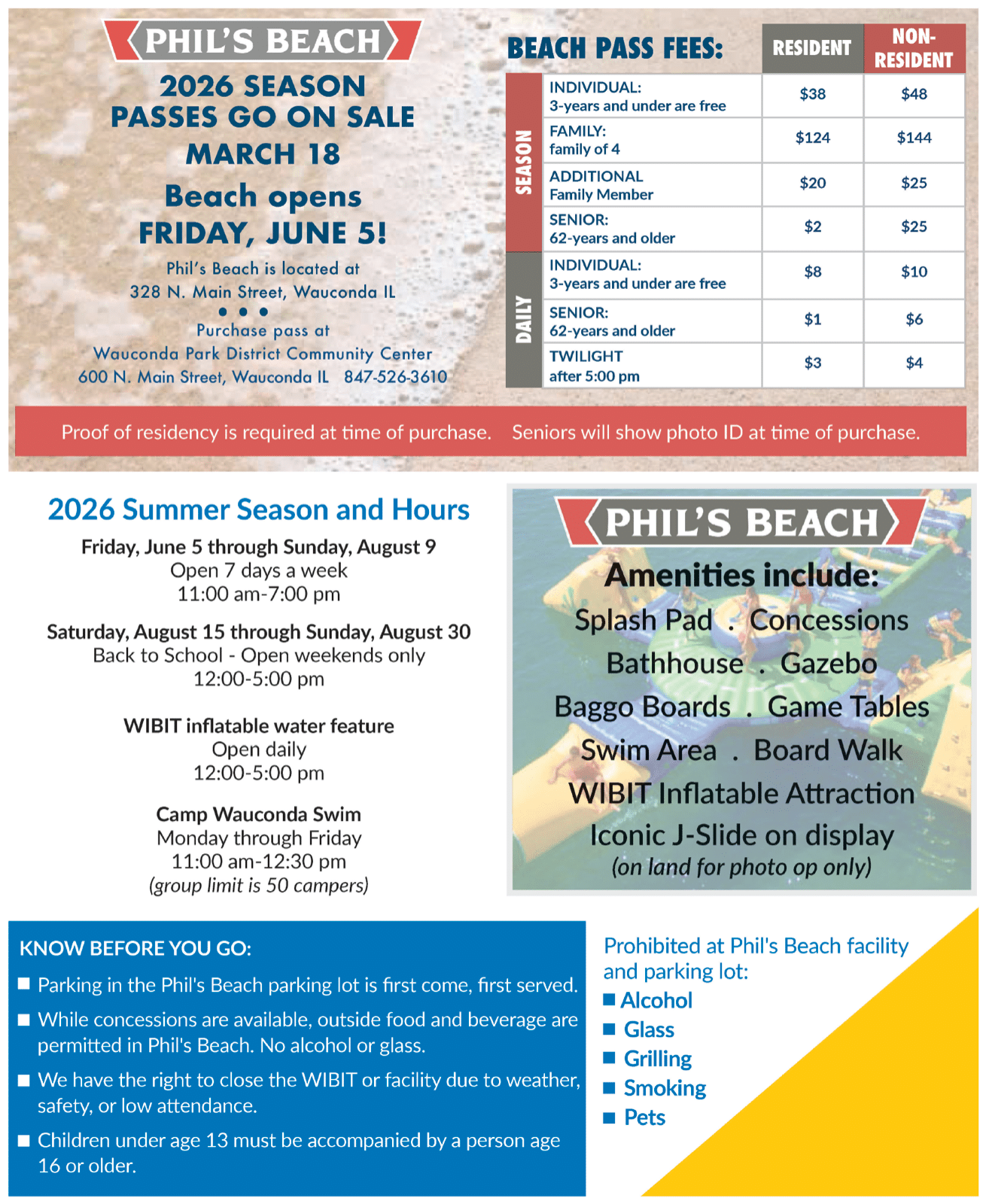 Beach Passes and Memorial Bricks may be purchase in person at our Community Center or on our website WPD STORE.